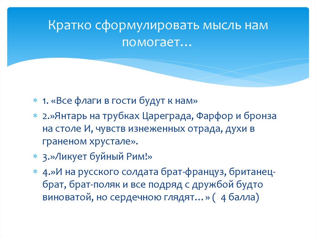 4.»И на русского солдата брат-француз, британецбрат, брат-поляк и все подряд с дружбой будто