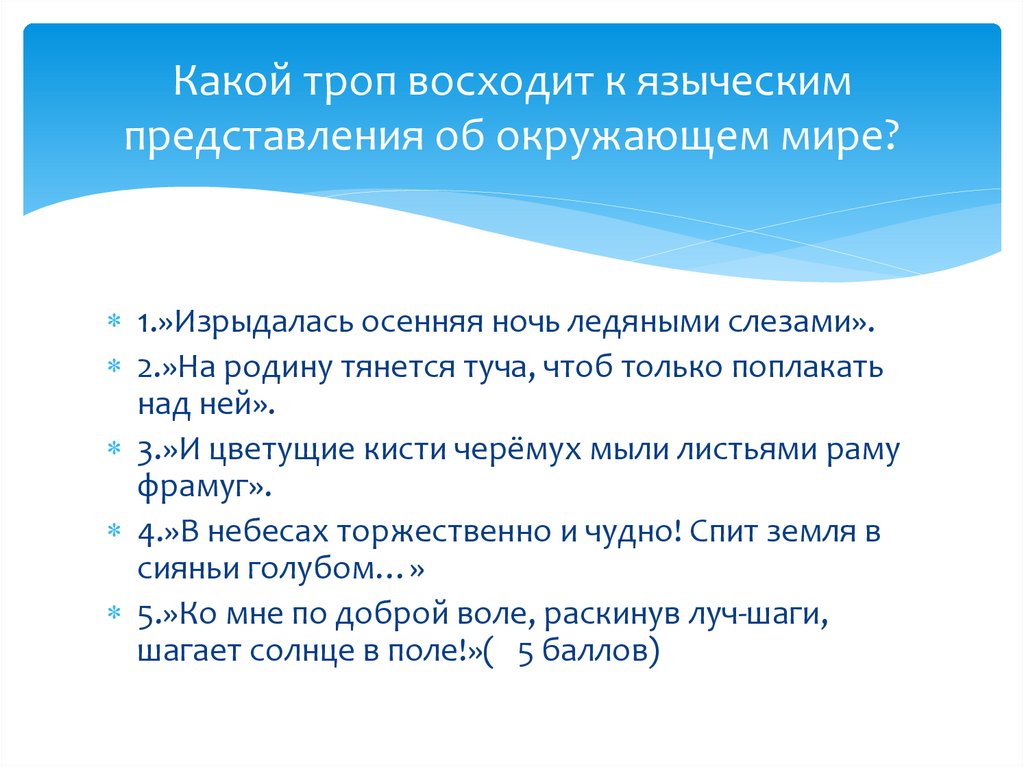 Какой троп восходит к языческимпредставления об окружающем мире?