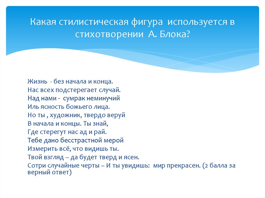 Какая стилистическая фигура используется встихотворении А. Блока?