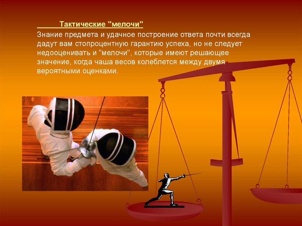 Тактические "мелочи"Знание предмета и удачное построение ответа почти всегда