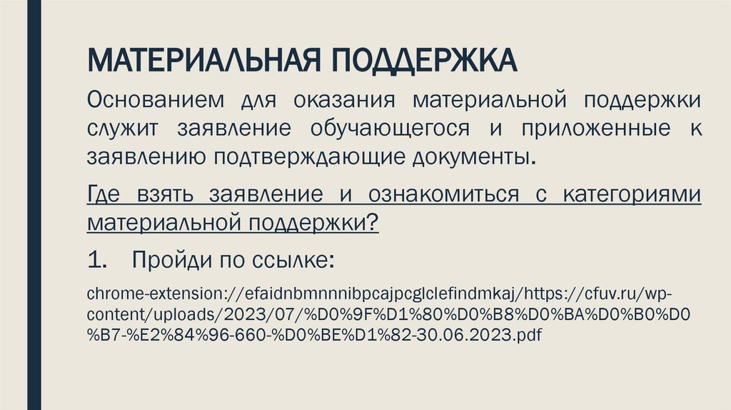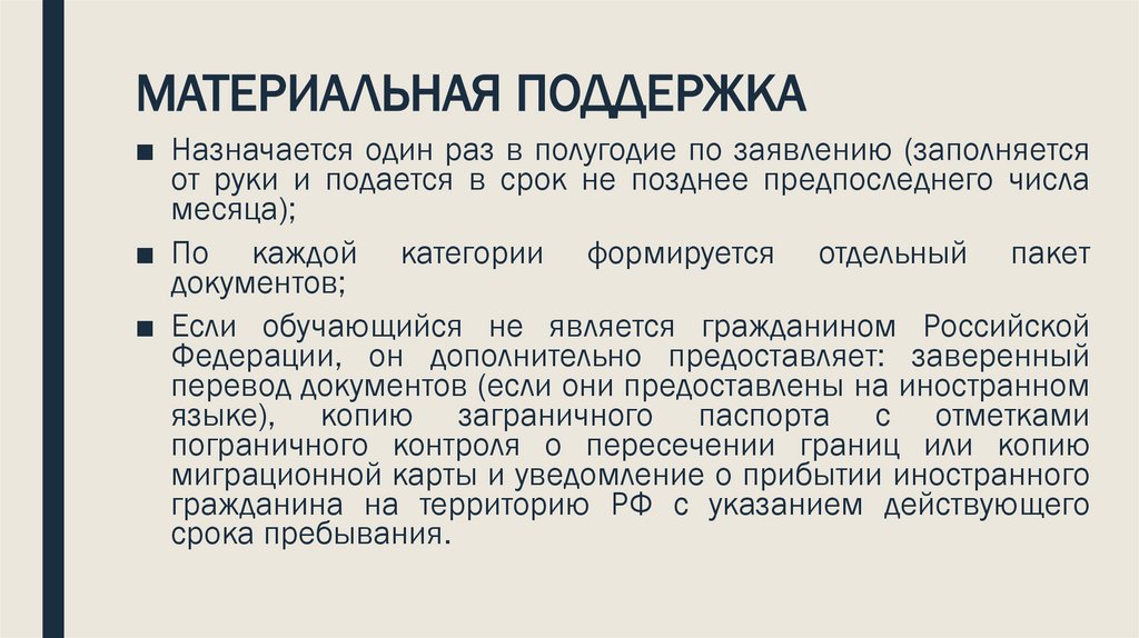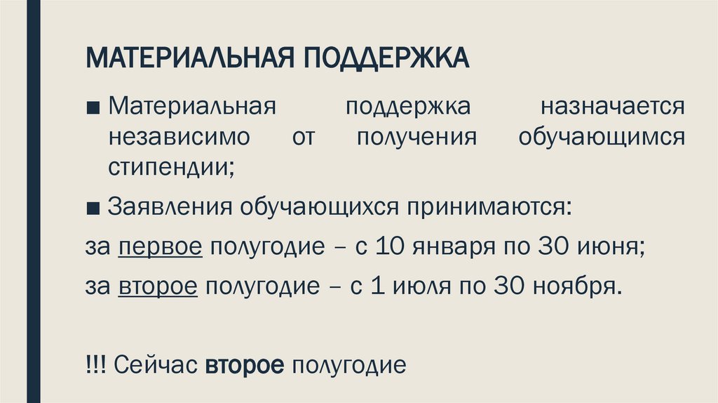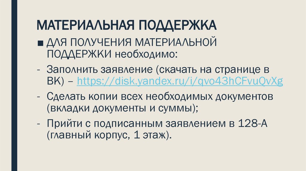 МАТЕРИАЛЬНАЯ ПОДДЕРЖКАОснованием для оказания материальной поддержки