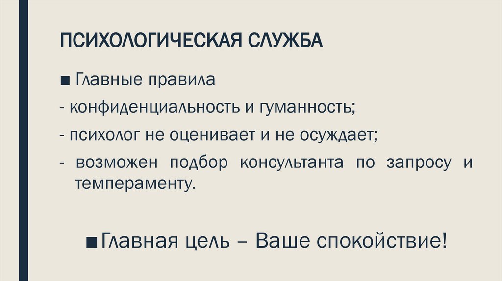 ПСИХОЛОГИЧЕСКАЯ СЛУЖБА■ Главные правила