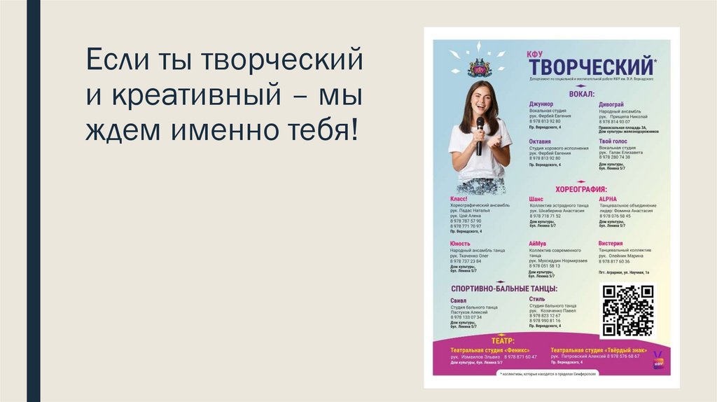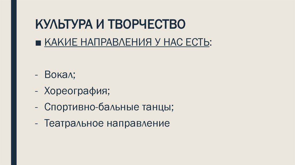 КУЛЬТУРА И ТВОРЧЕСТВО■ КАКИЕ НАПРАВЛЕНИЯ У НАС ЕСТЬ: