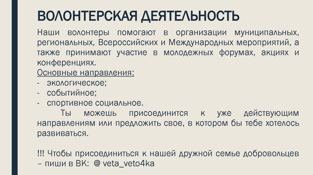 ВОЛОНТЕРСКАЯ ДЕЯТЕЛЬНОСТЬНаши волонтеры помогают в организации муниципальных,