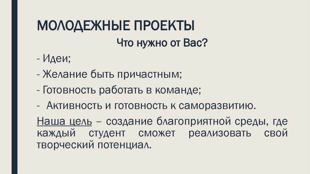 МОЛОДЕЖНЫЕ ПРОЕКТЫЧто нужно от Вас?