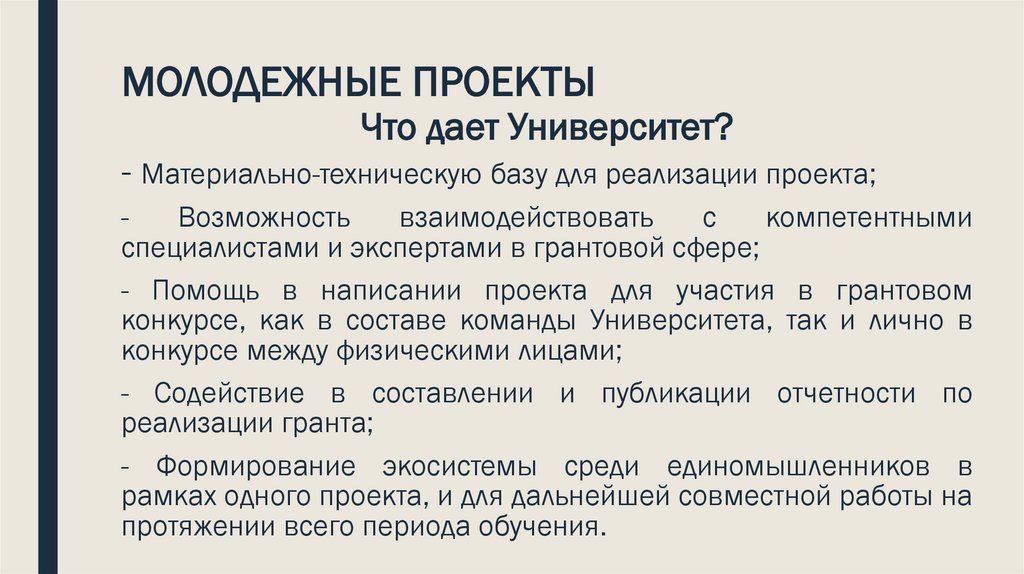 МОЛОДЕЖНЫЕ ПРОЕКТЫЧто дает Университет?
