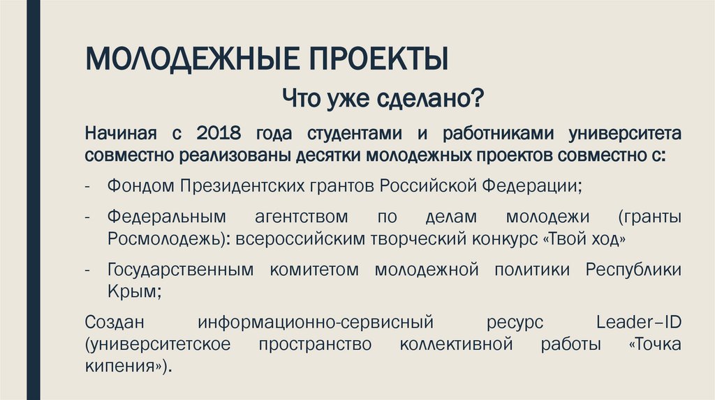 МОЛОДЕЖНЫЕ ПРОЕКТЫЧто уже сделано?