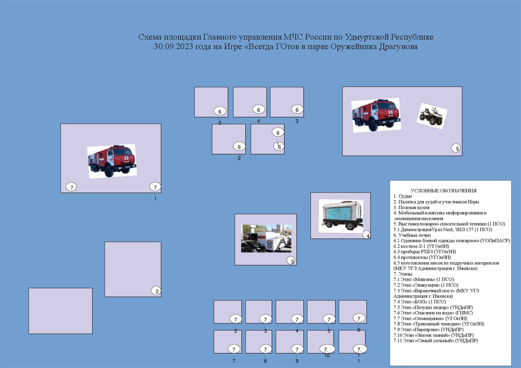 Схема площадки Главного управления МЧС России по Удмуртской Республике30.09.2023 года на Игре «Всегда ГОтов в парке Оружейника Драгунова