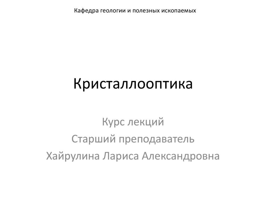 Кафедра геологии и полезных ископаемыхКристаллооптика