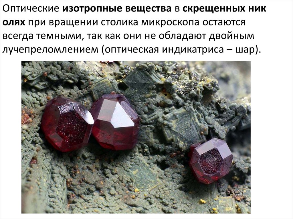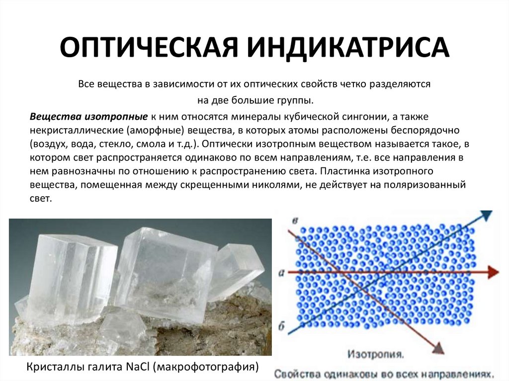 Вещества изотропные к ним относятся минералы кубической сингонии, а также