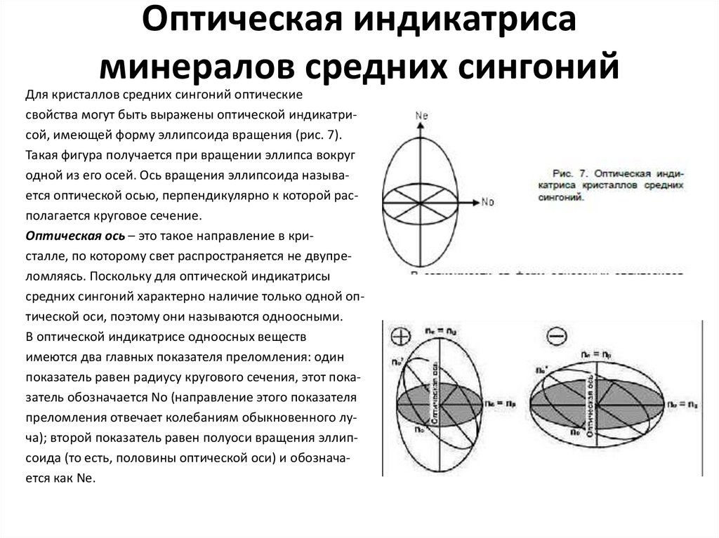 преломления отвечает колебаниям обыкновенного луча); второй показатель равен полуоси вращения эллипсоида (то есть, половины оптической оси) и обозначается как Ne.