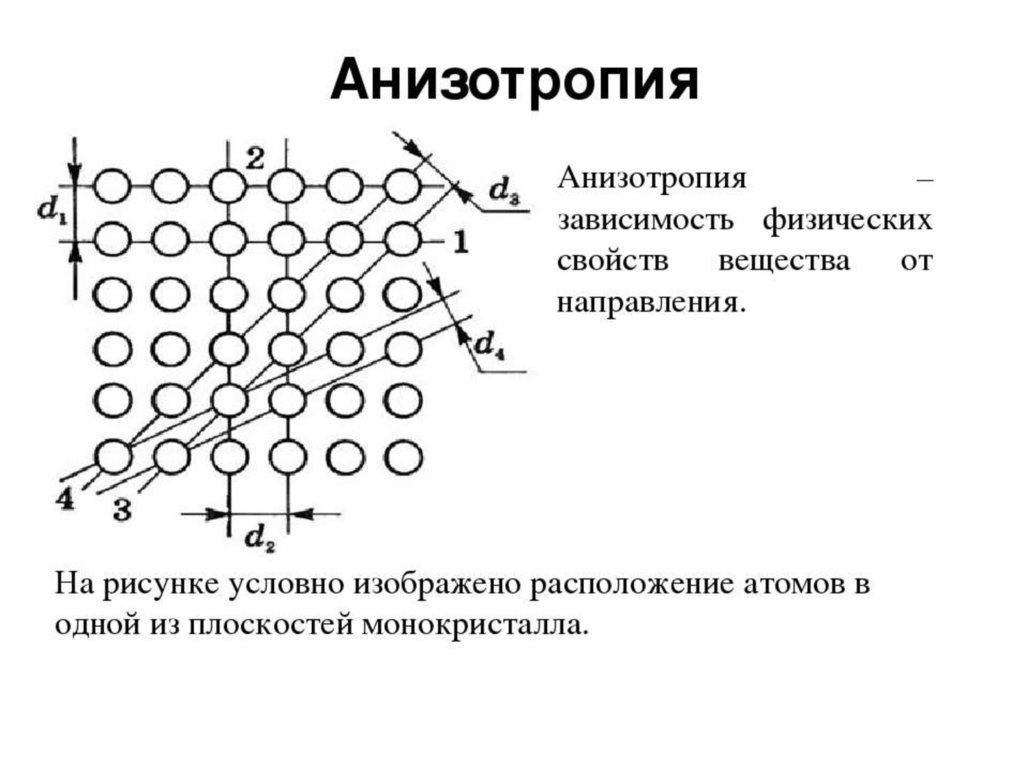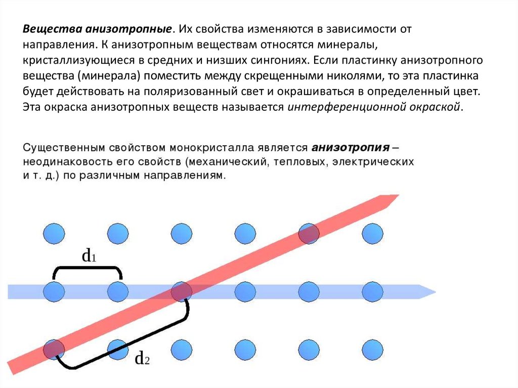 Вещества анизотропные. Их свойства изменяются в зависимости отнаправления. К анизотропным веществам относятся минералы,