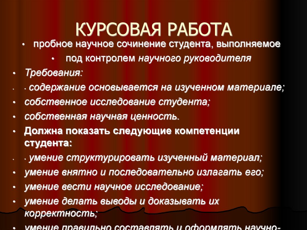 Курсовая работа. Пробное научное сочинение студента, выполняемое под контролем научного руководителя