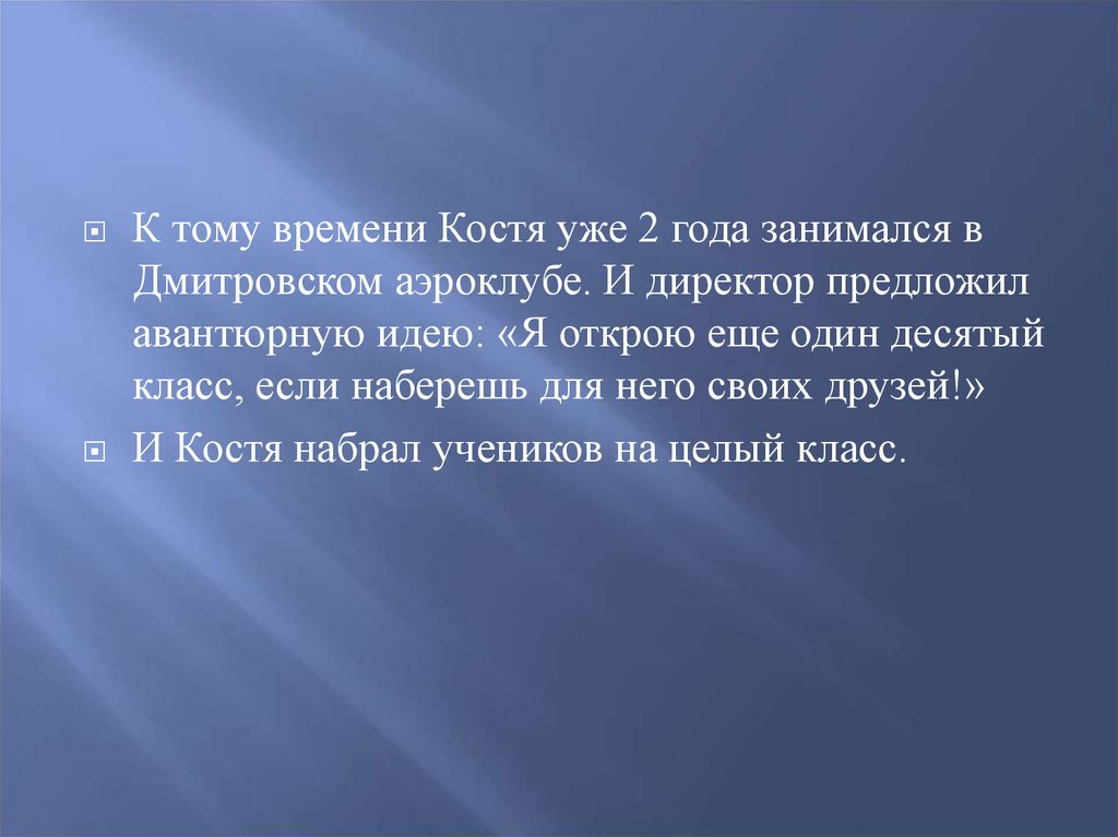 К тому времени Костя уже 2 года занимался вДмитровском аэроклубе. И директор предложил