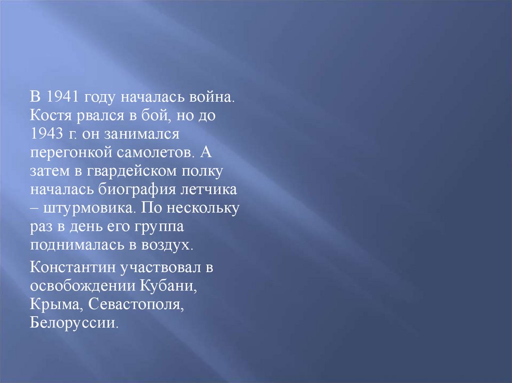 В 1941 году началась война.Костя рвался в бой, но до