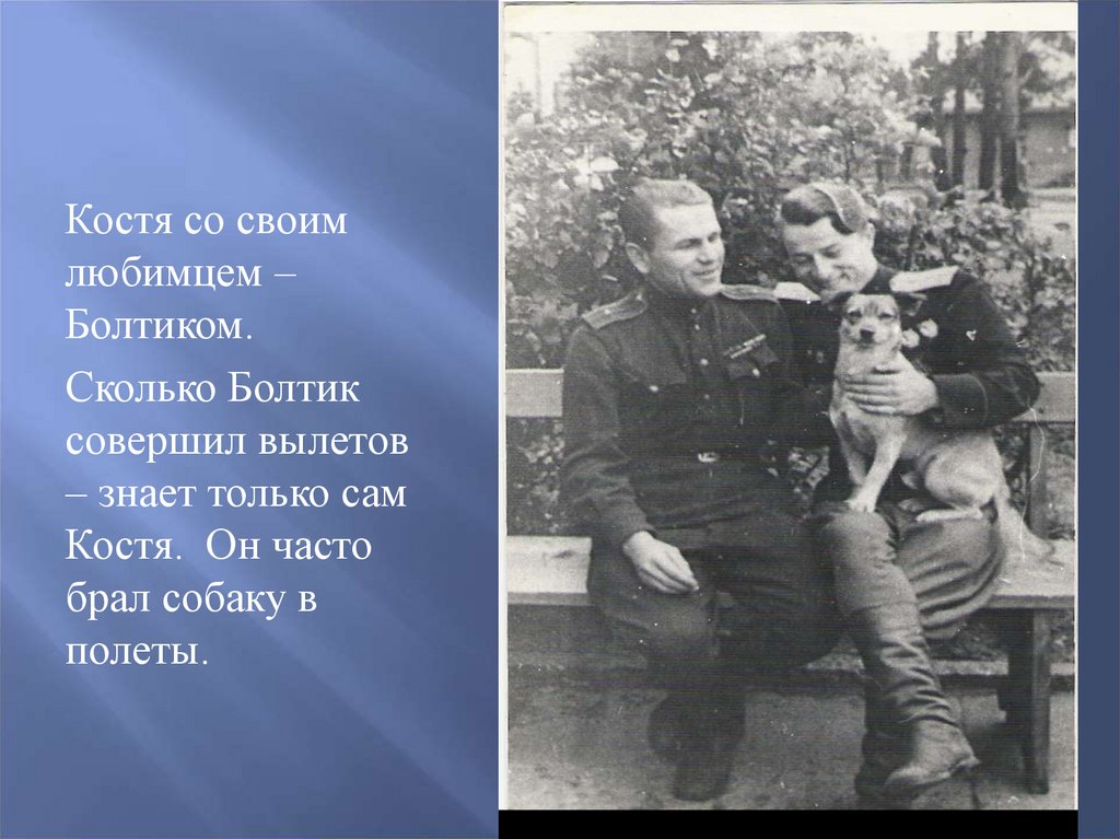 Закончилась война. Костя мечтал поступить вАкадемию. Болтик был списан с «летного дела»,
