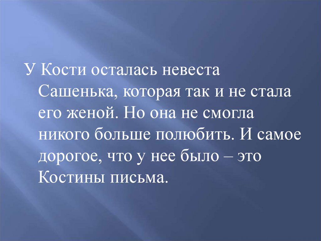 У Кости осталась невестаСашенька, которая так и не стала