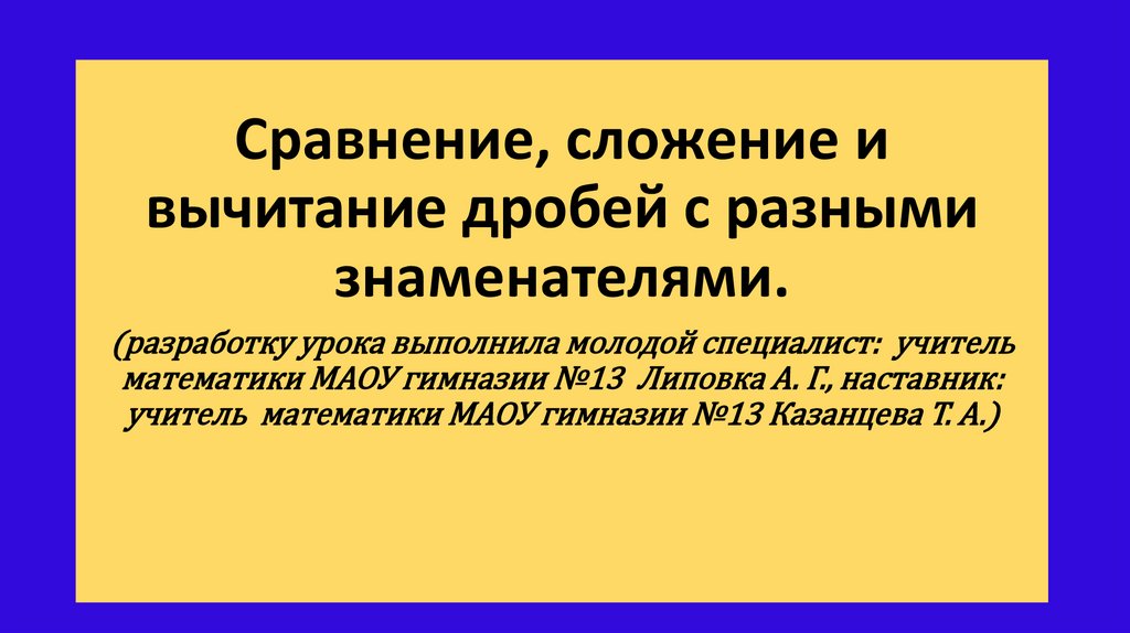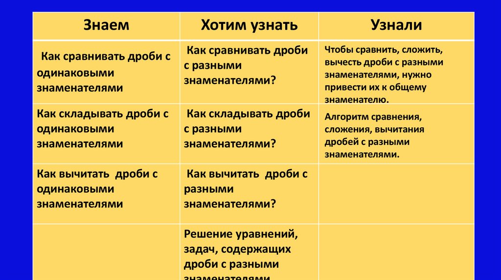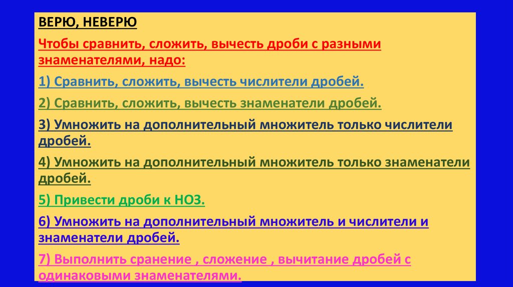 Сравнение, сложение и вычитание дробей с разными знаменателями