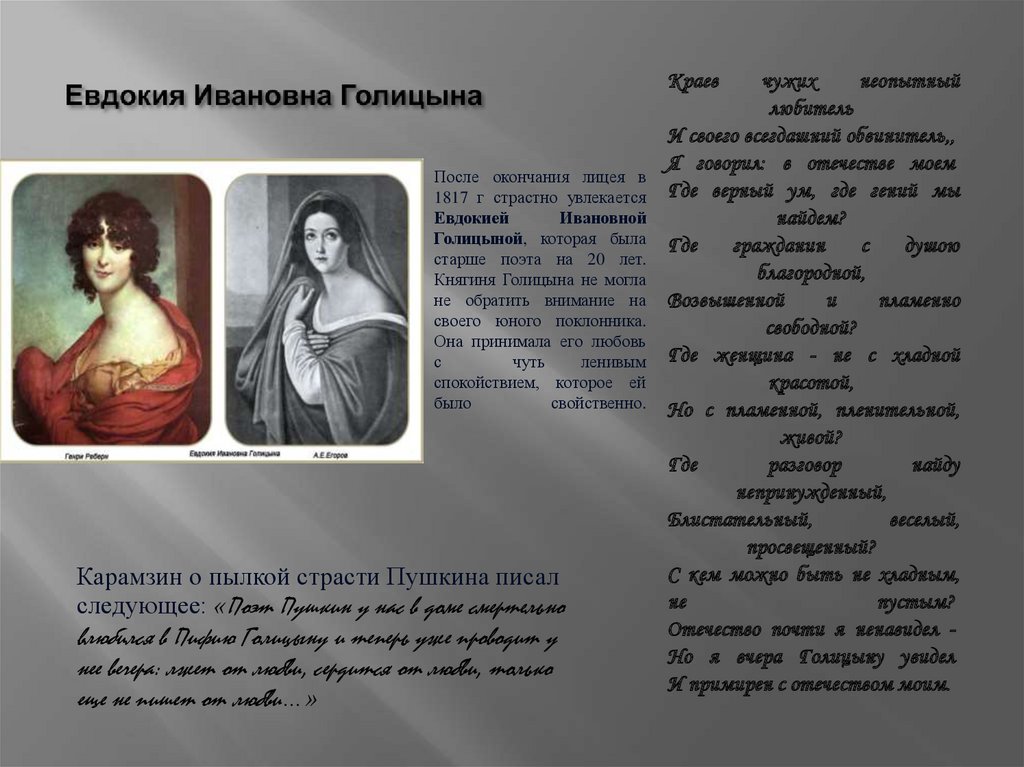 Карамзин о пылкой страсти Пушкина писал