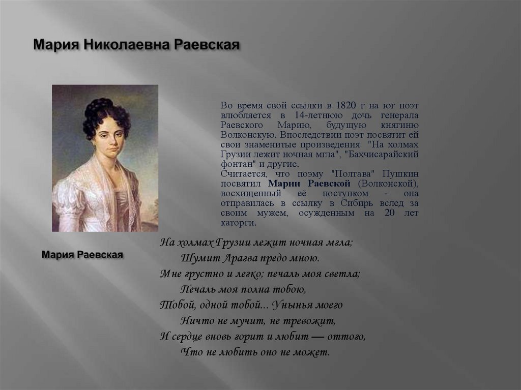 посвятил Марии Раевской (Волконской),
