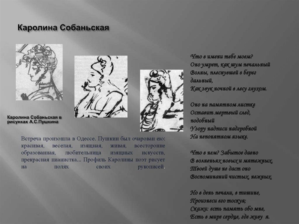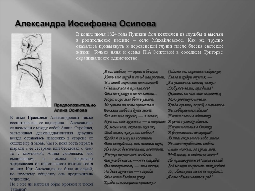 Во время свой ссылки в 1820 г на юг поэтвлюбляется в 14-летнюю дочь генерала