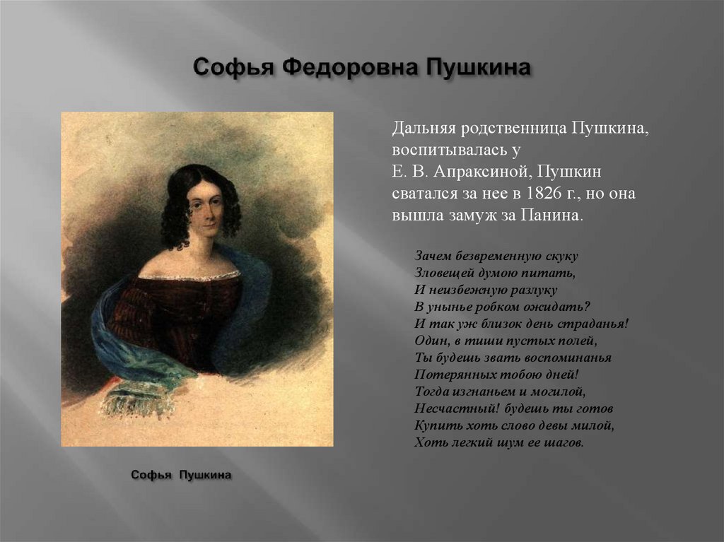 Е. В. Апраксиной, Пушкин