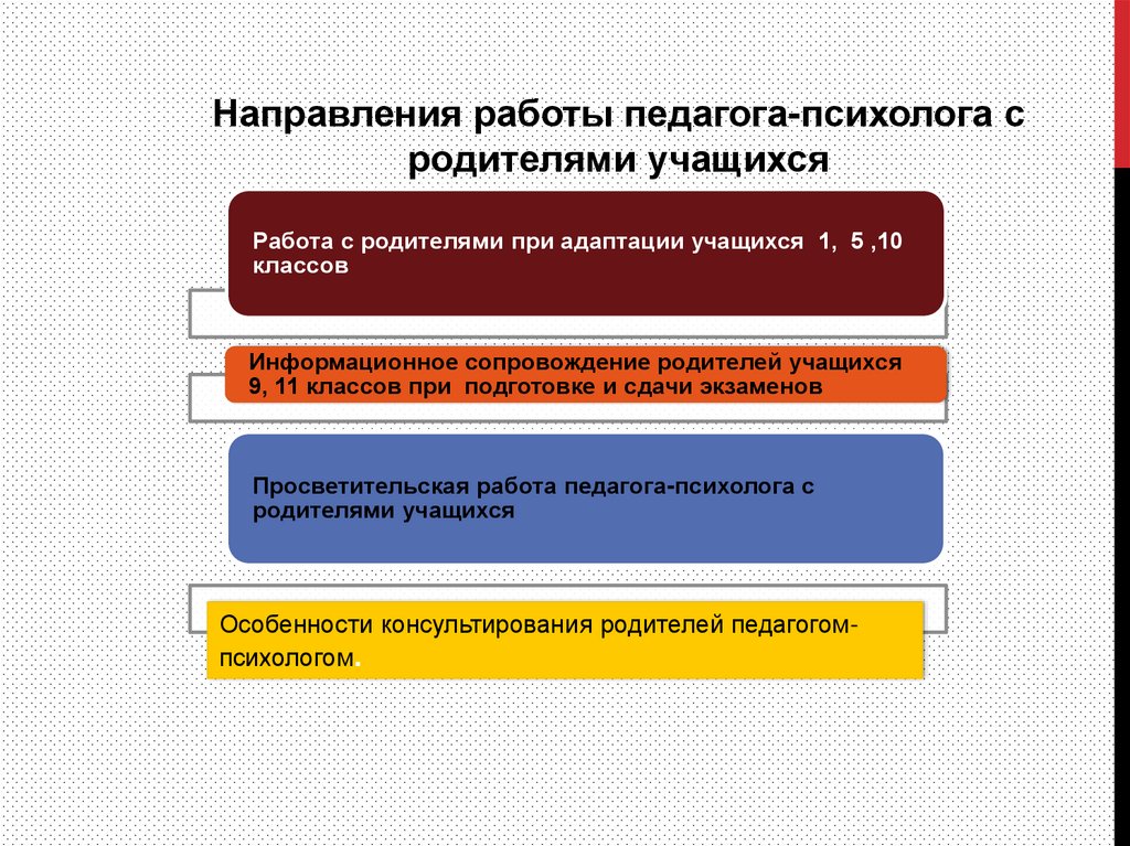 Направления работы педагога-психолога сродителями учащихся