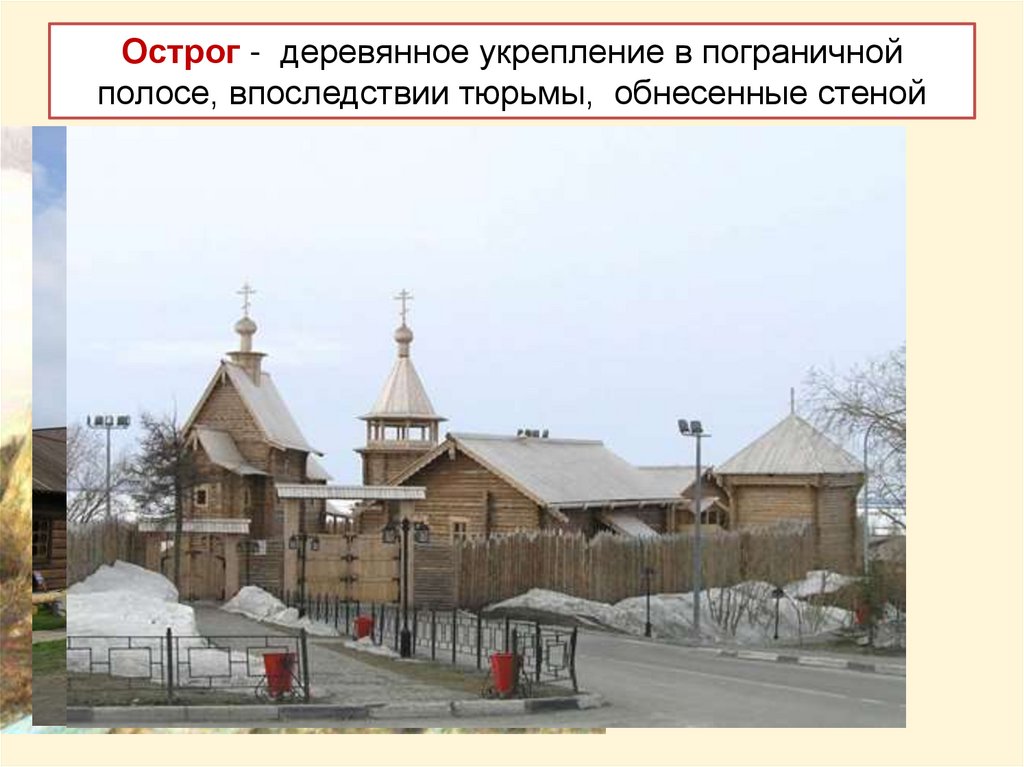 Острог - деревянное укрепление в пограничнойполосе, впоследствии тюрьмы, обнесенные стеной