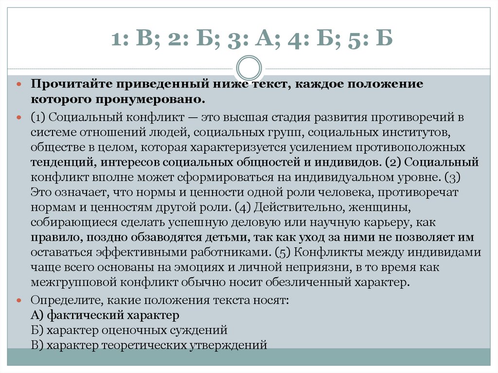 1: В; 2: Б; 3: А; 4: Б; 5: БПрочитайте приведенный ниже текст, каждое положение