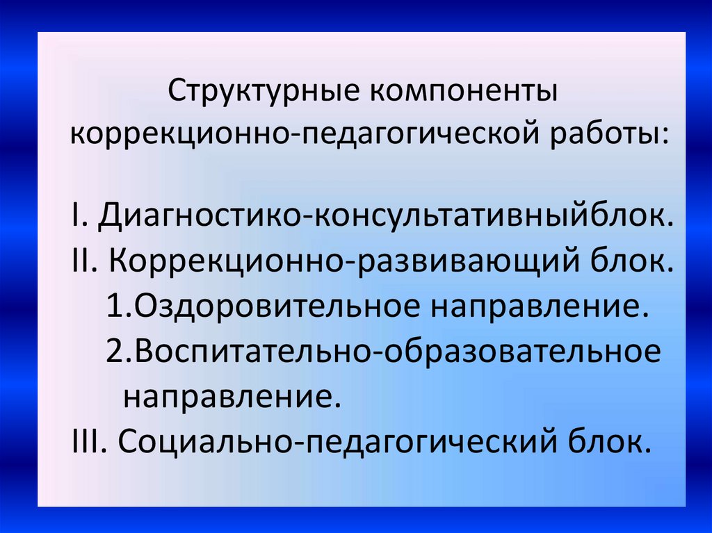 Структурные компонентыкоррекционно-педагогической работы: