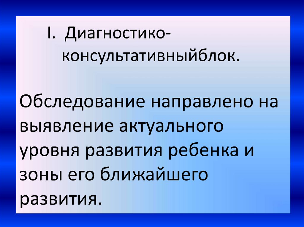 I. Диагностико-консультативныйблок.