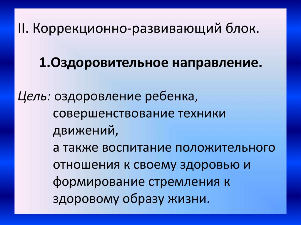 II. Коррекционно-развивающий блок.1.Оздоровительное направление.