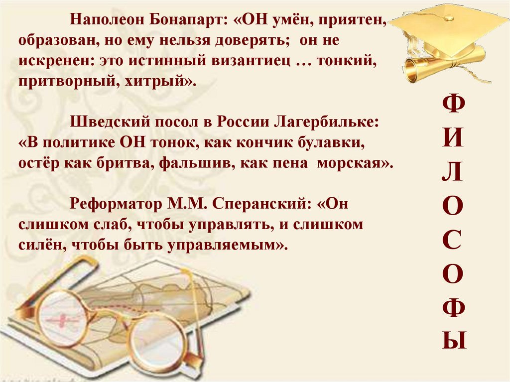 Наполеон Бонапарт: «ОН умён, приятен,образован, но ему нельзя доверять; он не