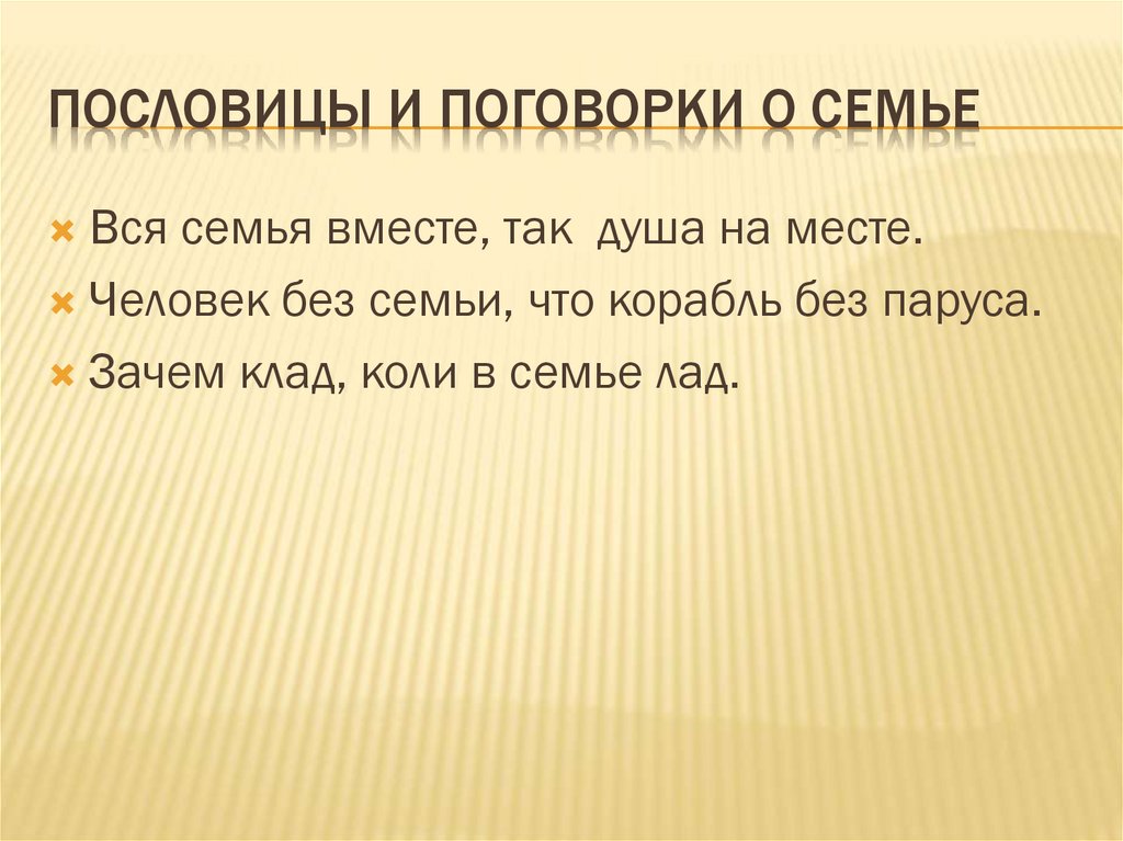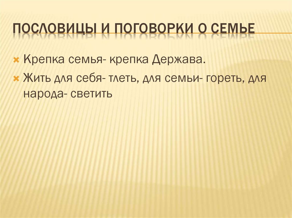ПОСЛОВИЦЫ И ПОГОВОРКИ О СЕМЬЕКрепка семья- крепка Держава.