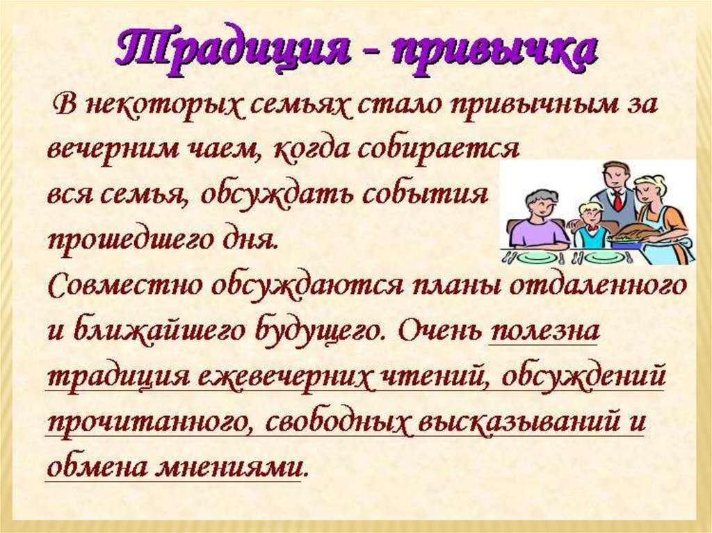 ЧТО ТАКОЕ СЕМЕЙНЫЕ ТРАДИЦИИ?Это обычные, принятые в семье