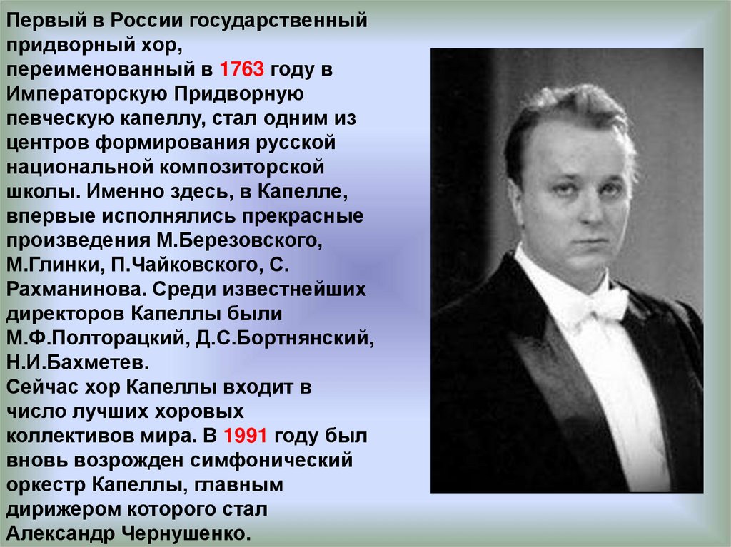 певческую капеллу, стал одним из