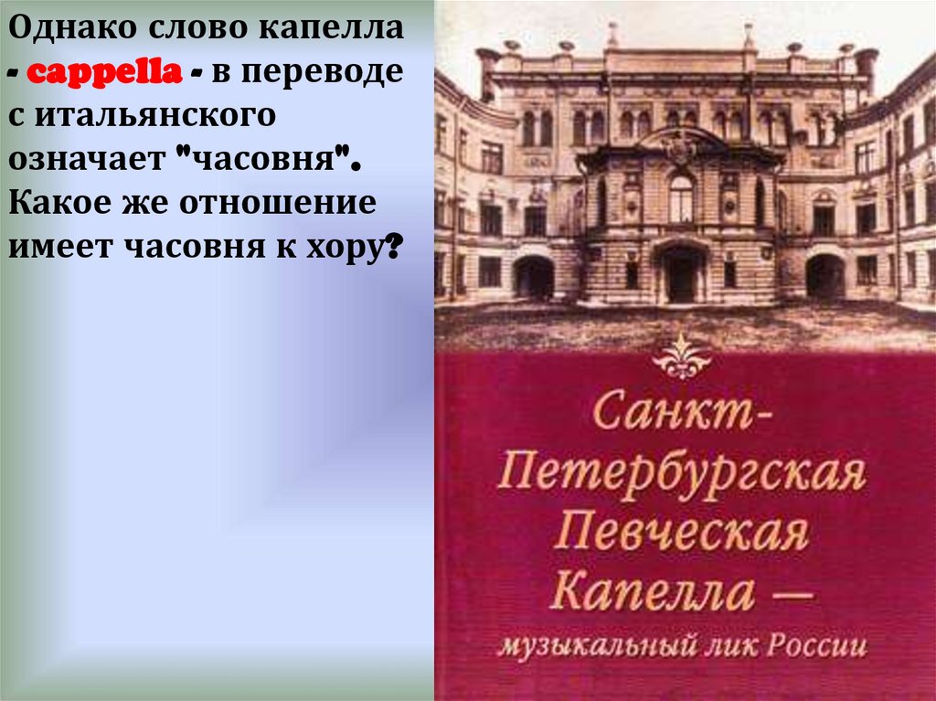 Однако слово капелла- cappella - в переводе