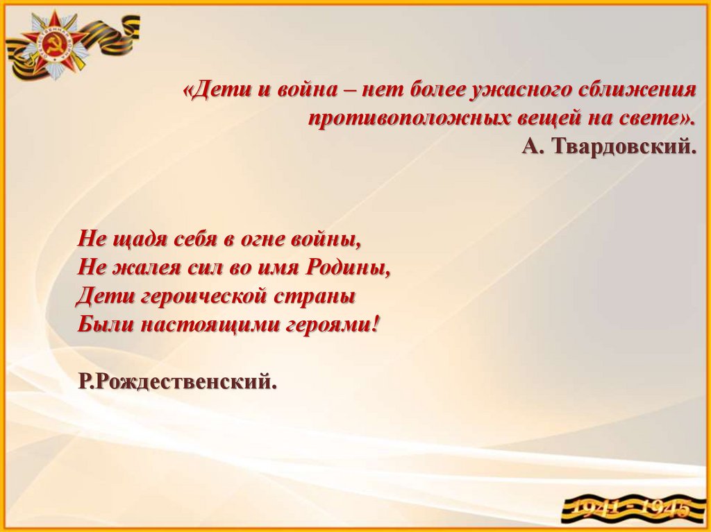 «Дети и война – нет более ужасного сближенияпротивоположных вещей на свете».