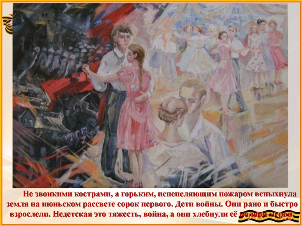 Не звонкими кострами, а горьким, испепеляющим пожаром вспыхнулаземля на июньском рассвете сорок первого. Дети войны. Они рано и быстро