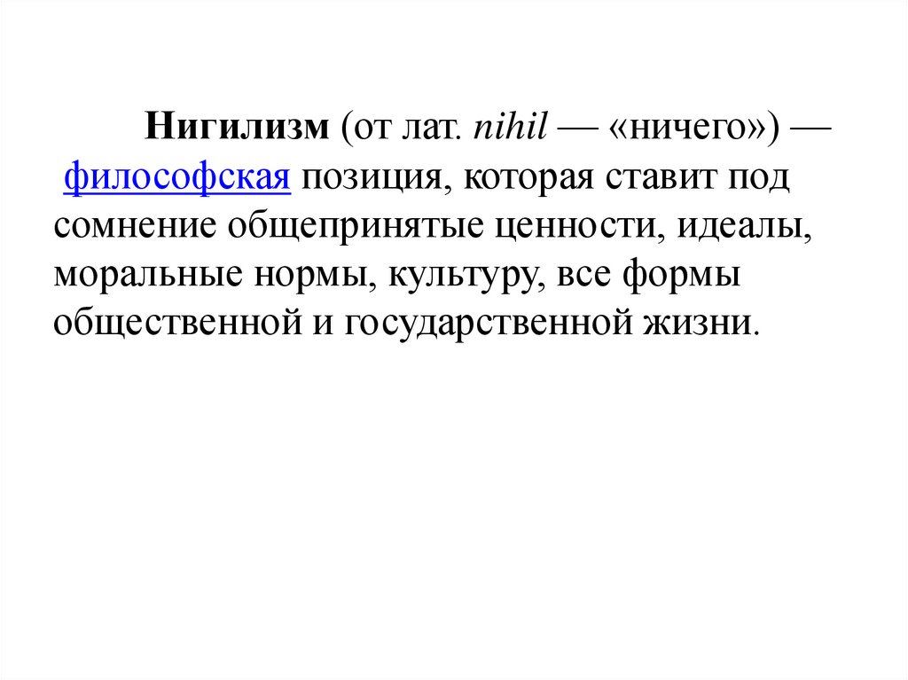 Нигилизм (от лат. nihil — «ничего») —философская позиция, которая ставит под
