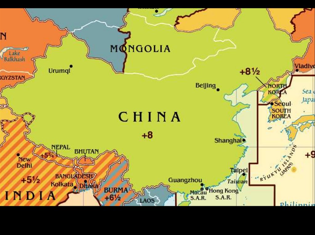 Каждый соседний часовой пояс отличается по времени