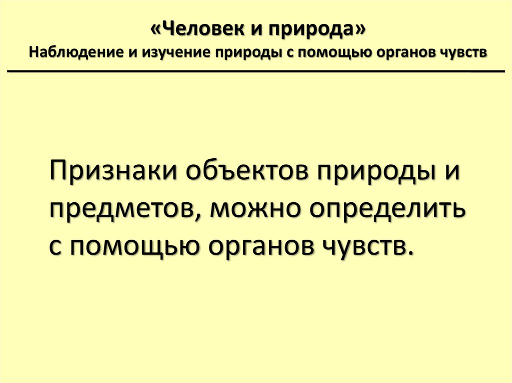 «Человек и природа»Наблюдение и изучение природы с помощью органов чувств