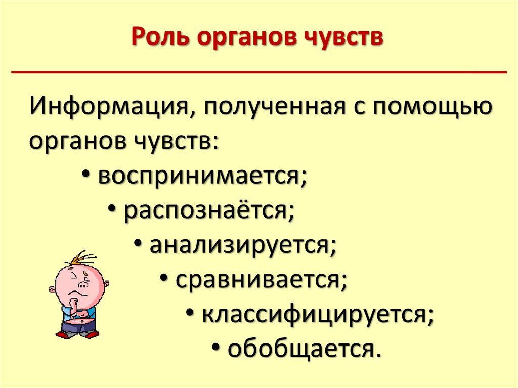 Роль органов чувствИнформация, полученная с помощью