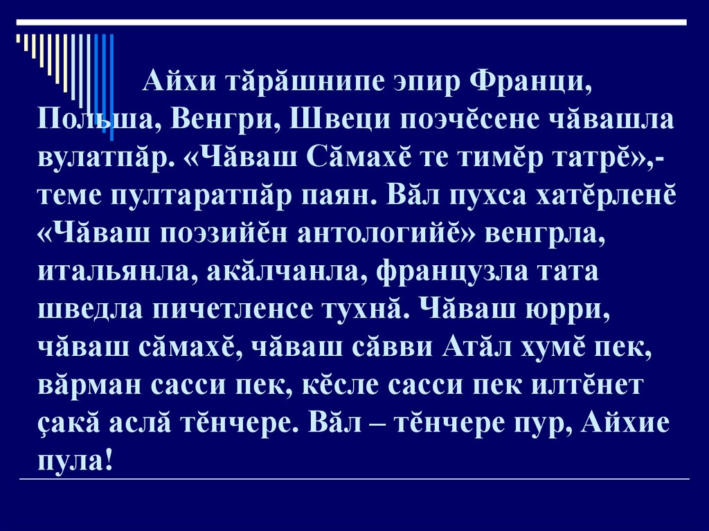 Айхи тăрăшнипе эпир Франци,Польша, Венгри, Швеци поэчĕсене чăвашла