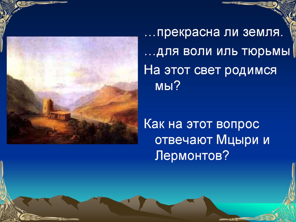 «Для воли иль тюрьмы на этот свет родимся мы?» М.Ю. Лермонтов. «Мцыри» (Отработка элементов анализа художественного текста)
