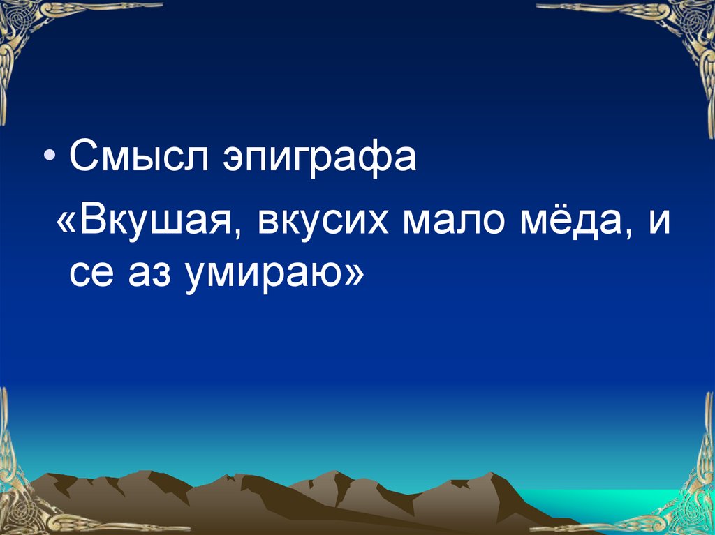 • Смысл эпиграфа«Вкушая, вкусих мало мёда, и