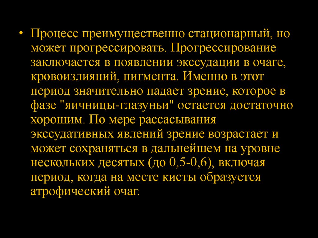 • Процесс преимущественно стационарный, номожет прогрессировать. Прогрессирование