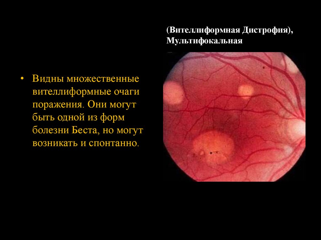 наследственных заболеваниях сетчатки. Множественные желтоватые