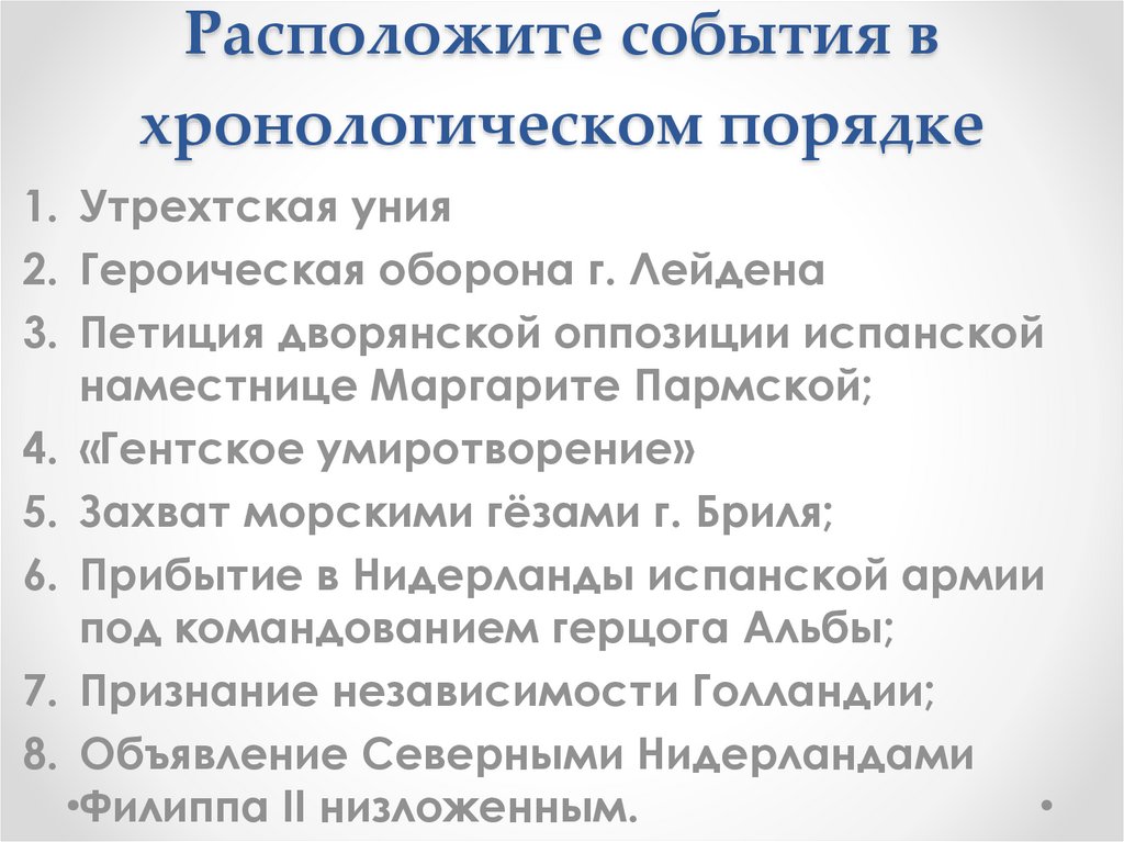Расположите события вхронологическом порядке