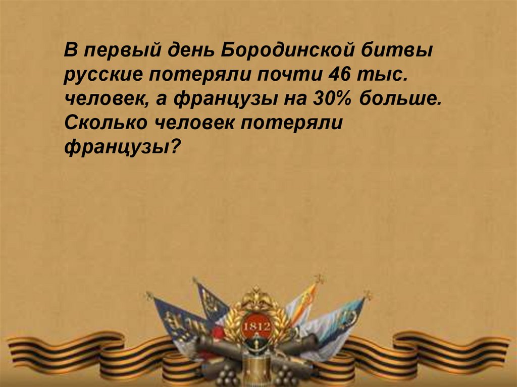 200- летию Бородинской битвы посвящается….. Урок по математике в 9 классе